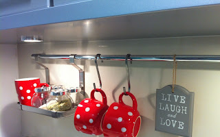 Numa das muitas pesquisas pela net encontrei este armário de cozinha, já não sei onde, e ADOREI! Comecei por publicar a imagem na minha página do facebook e todas gostaram! Ontem fui ao De Borla e imaginem, encontrei as canecas! Fiquei em pulgas, comprei logo 4, duas canecas e duas chávenas almoçadeiras a 1,79€ cada, LINDAS! Depois comecei a ver se encontrava o resto, está quase!:-)